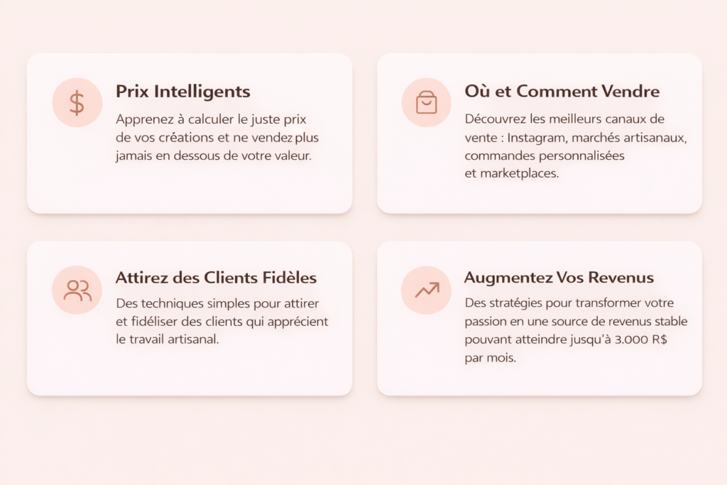 Des femmes qui souhaitent apprendre depuis zéro, créer avec sérénité et transformer leur talent en créations élégantes — pour elles-mêmes, pour offrir ou même pour générer un revenu complémentaire.