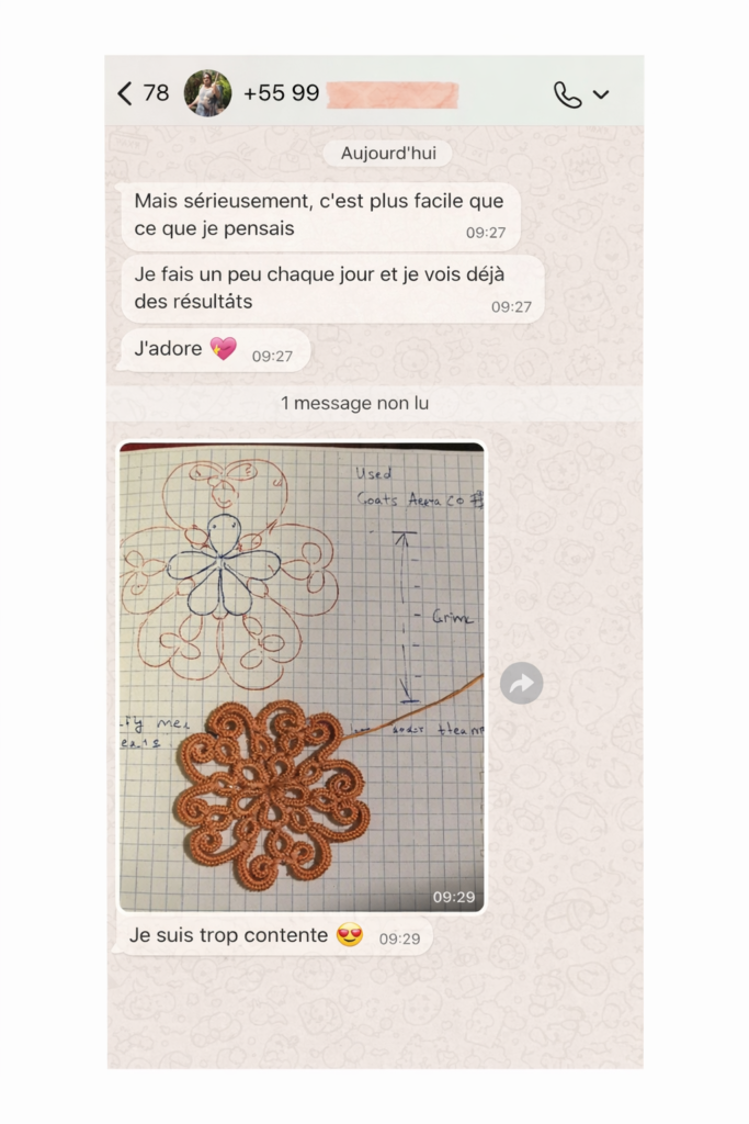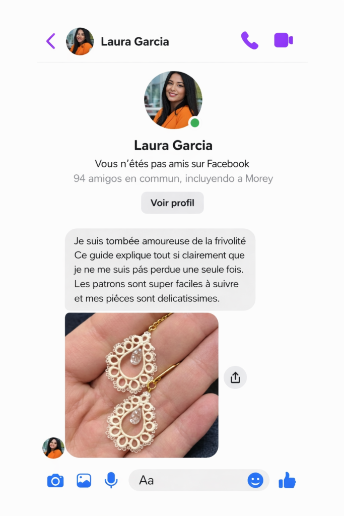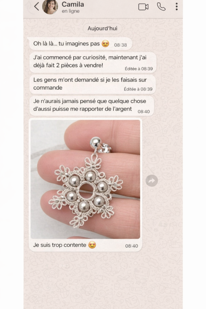 Artisane en frivolité et créatrice d’une méthode pensée pour des femmes réelles.