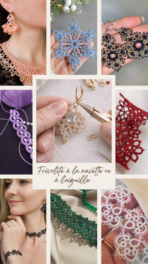 Découvrez une collection exclusive de créations en frivolité, au style raffiné et sophistiqué, pensées pour sublimer vos réalisations et captiver les regards.
